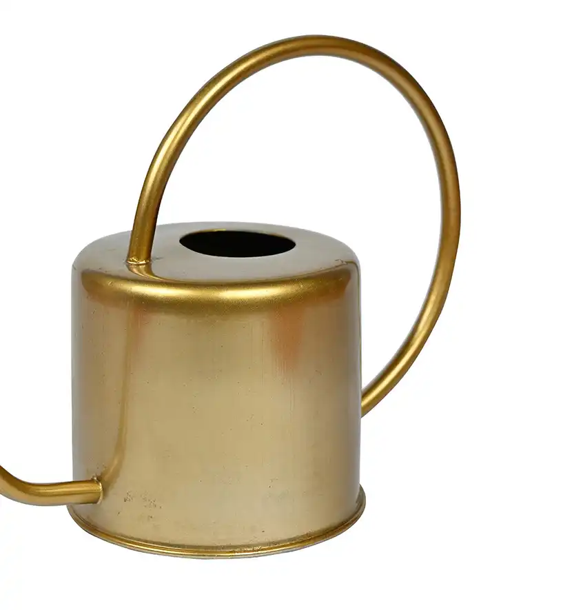 This product features a metal watering can in golden colour