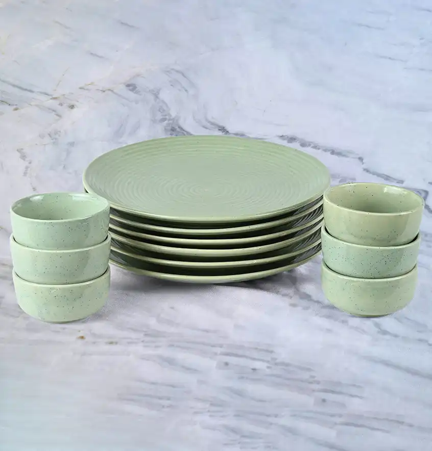 Olive AuraFlow Dinner Set For 6 (12 Pieces)