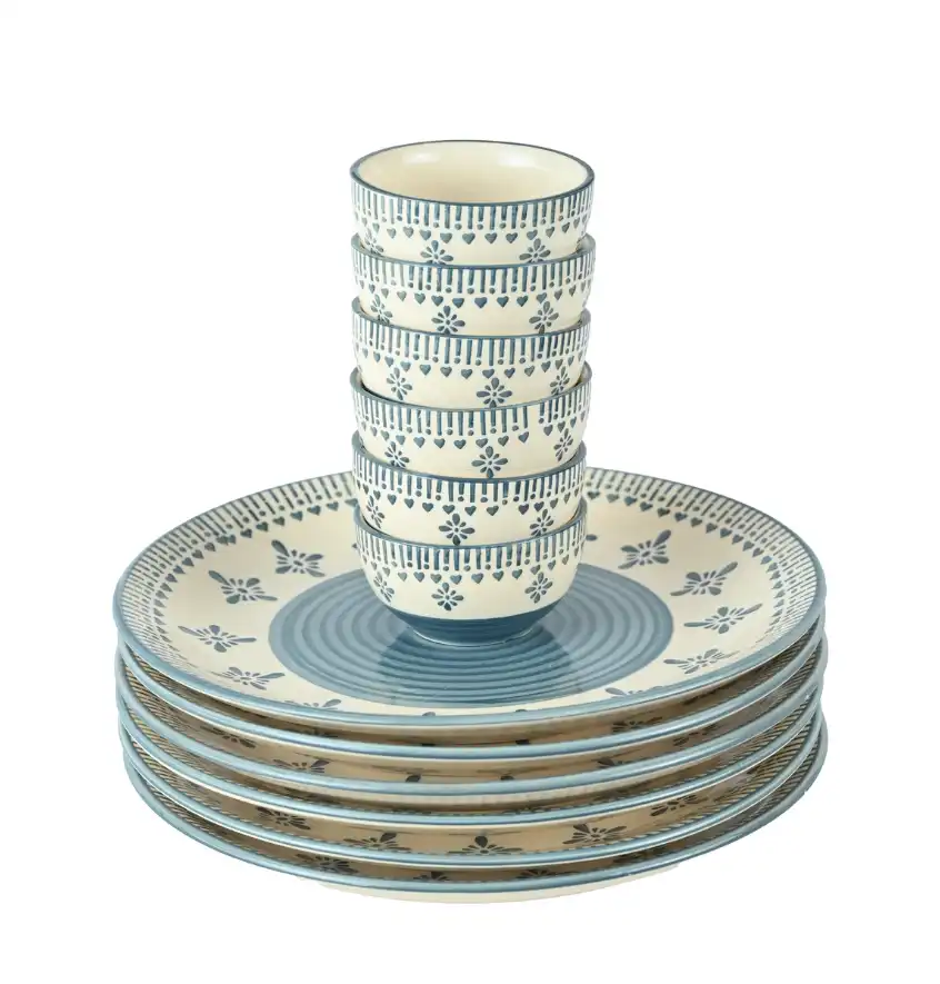 Bring home the breezy charm of the Aegean coast with the Santorini Motif Dinner Set. This 12-piece set, designed for six, includes 6 dinner plates and 6 matching bowls, each featuring intricate patterns inspired by the serene blues and whites of the iconic Greek island. Crafted from premium ceramic, the set beautifully blends coastal elegance with everyday practicality. Whether you're hosting a dinner party or enjoying a quiet family meal, this set adds a fresh, sun-kissed vibe to your table.