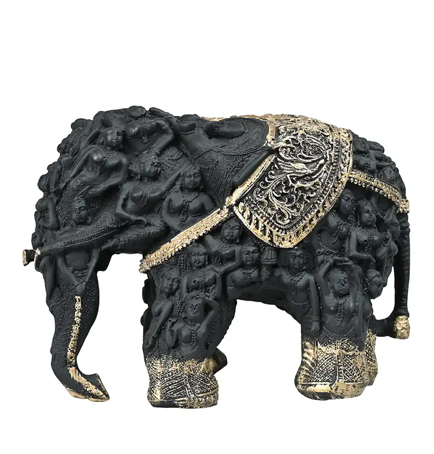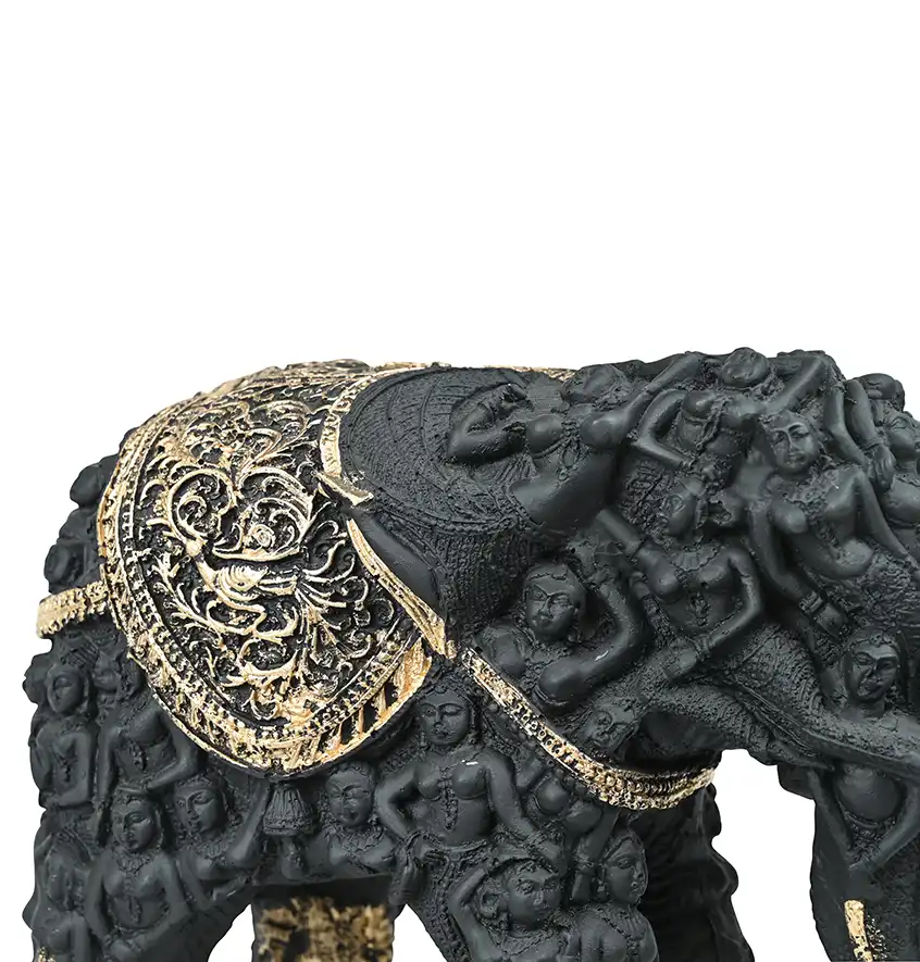 The product is made of Polyresin. It has a black self-engraved body adorned with golden detailing.