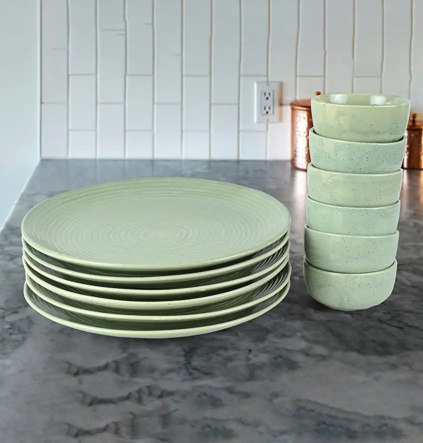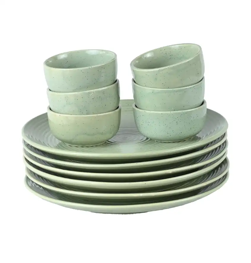 Olive AuraFlow Dinner Set For 6 (12 Pieces)