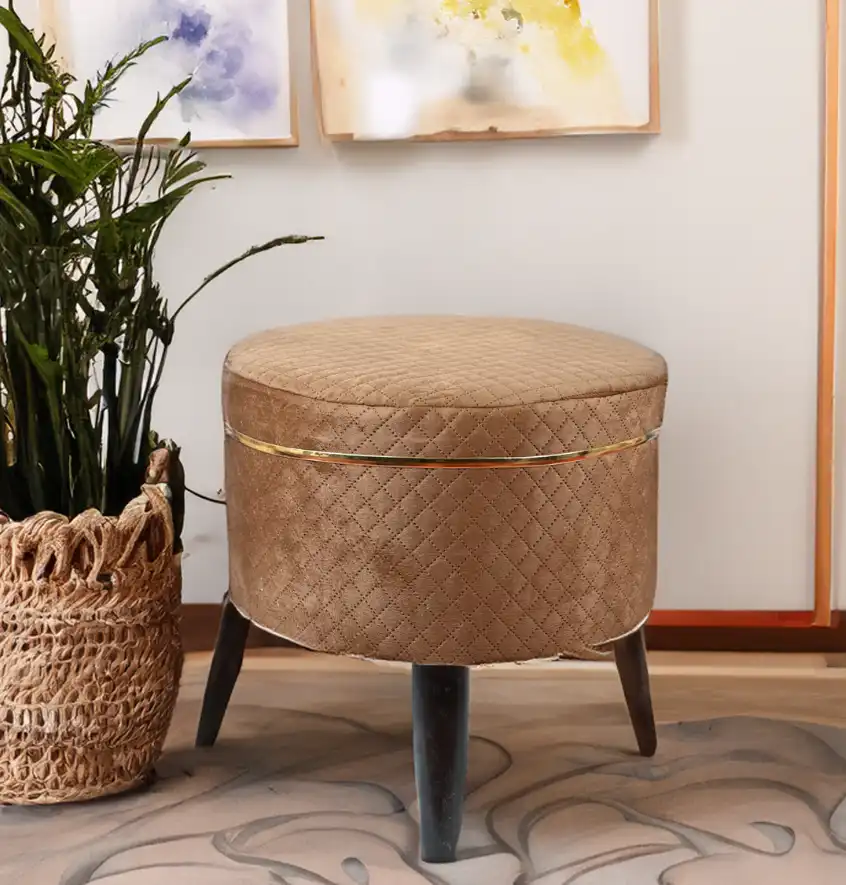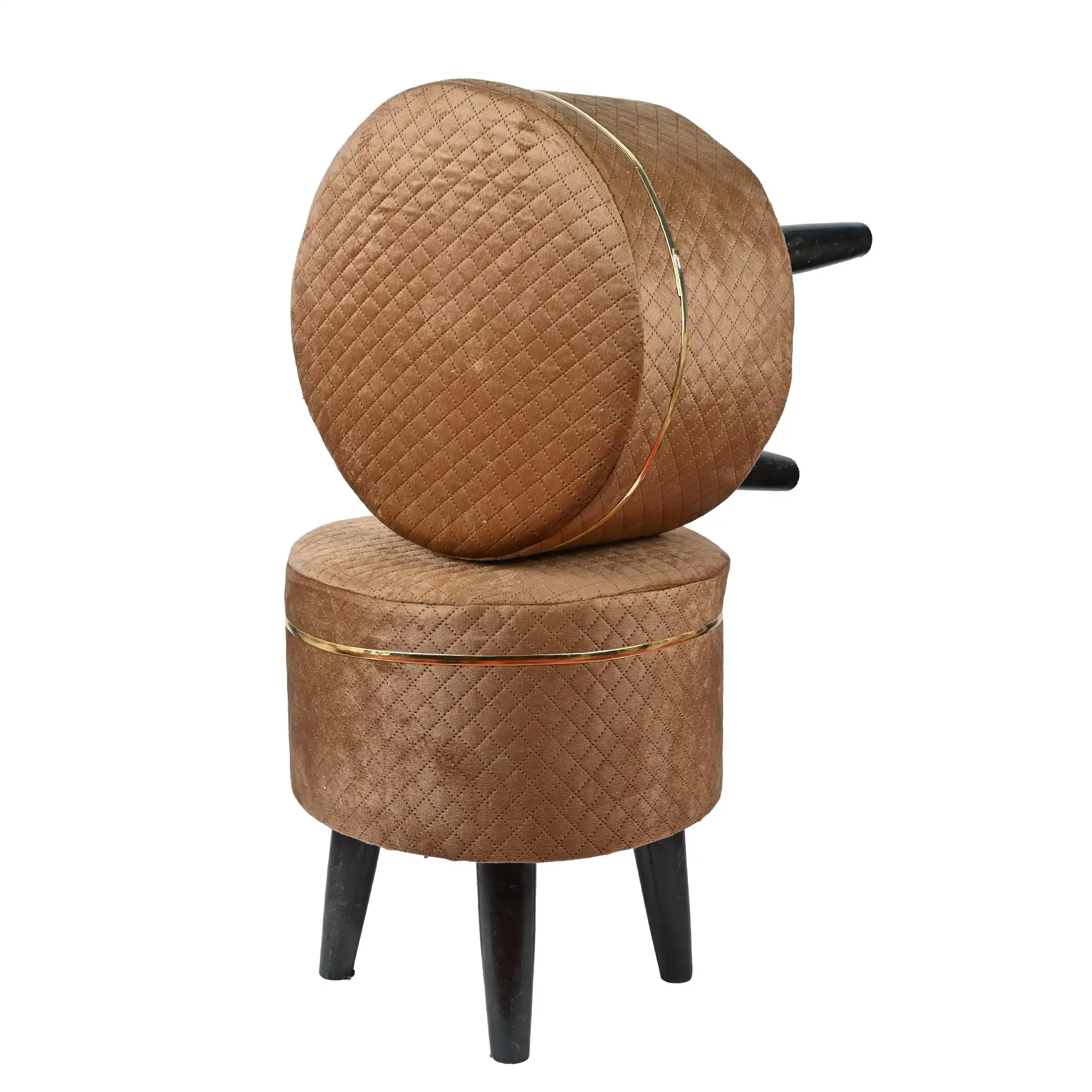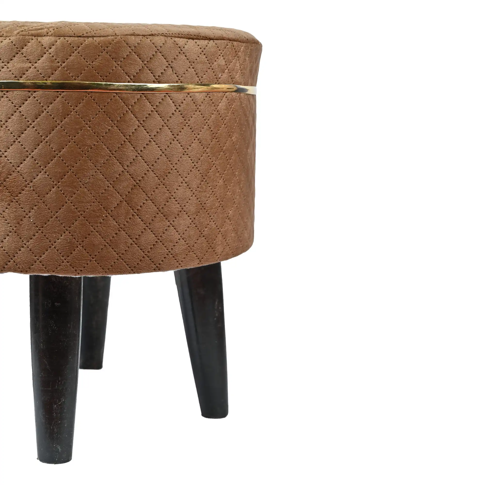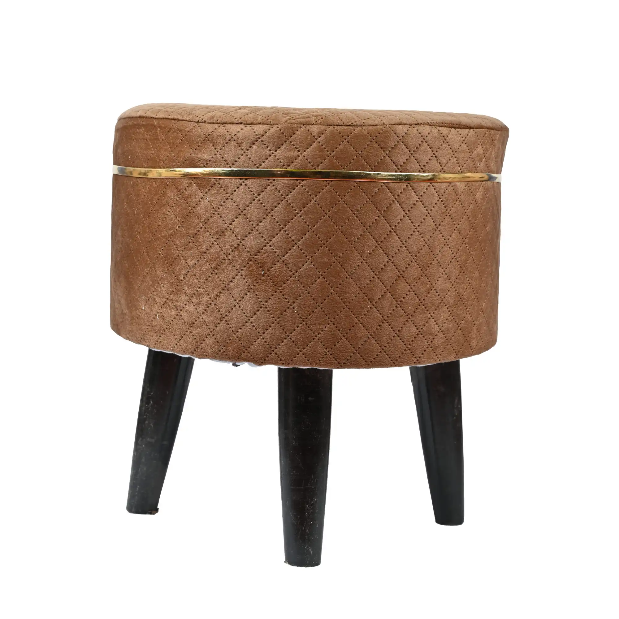 This product features a sturdy wooden frame (legs) and the seat is adorned with handwoven cotton fabric