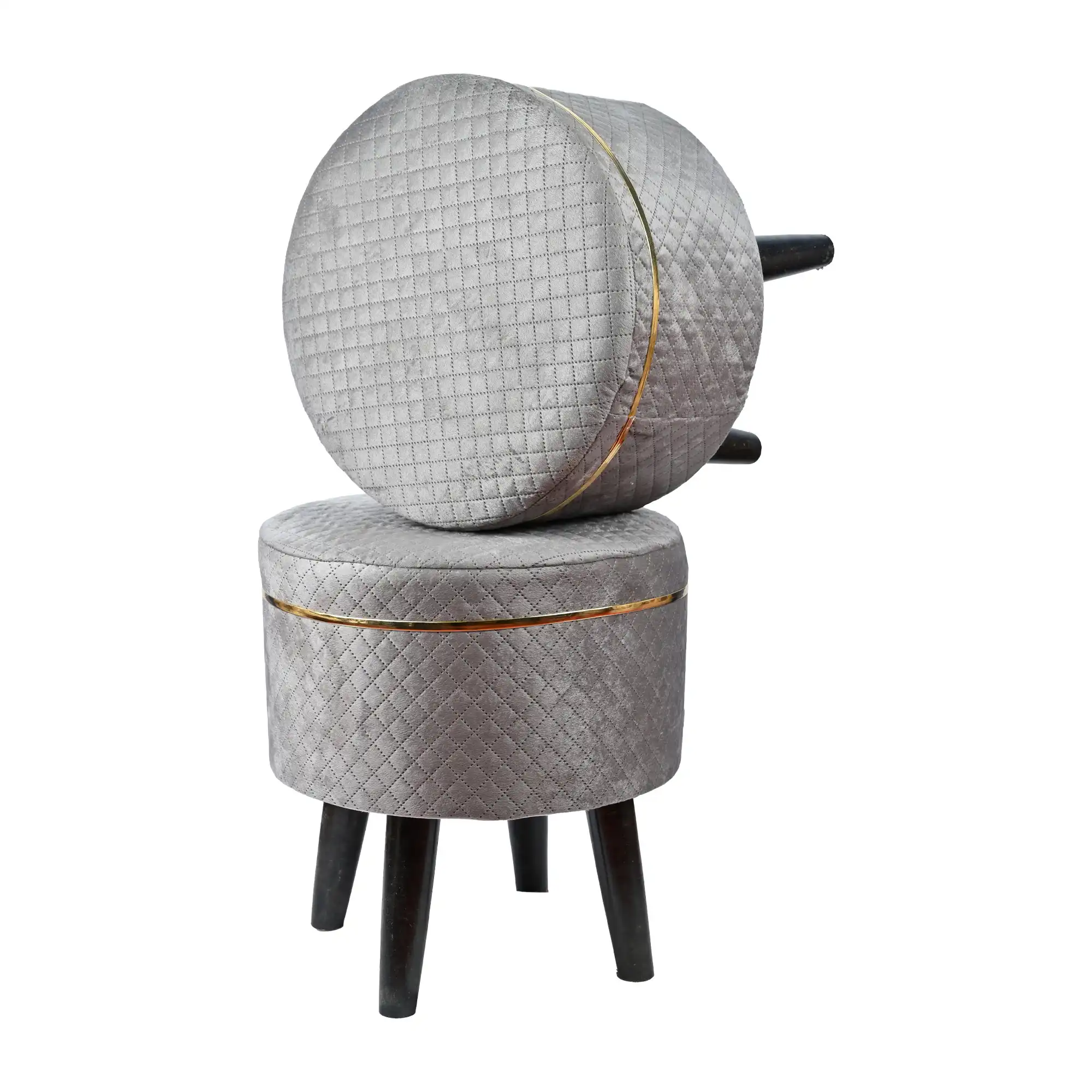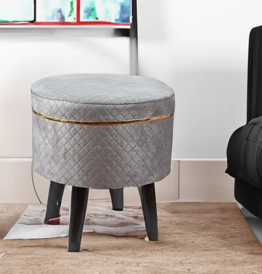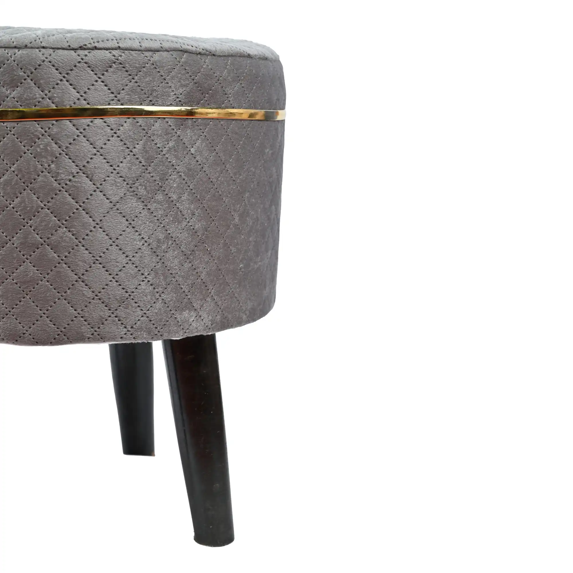 This product features a sturdy wooden frame (legs) and the seat is adorned with handwoven cotton fabric