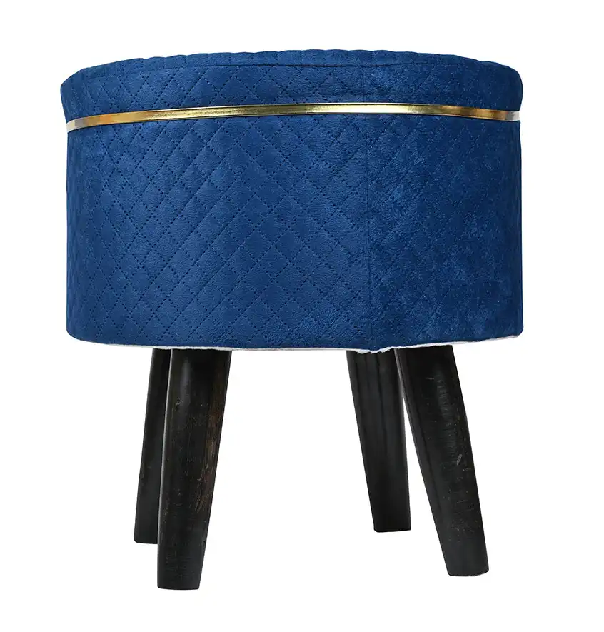 This product features a sturdy wooden frame (legs) and the seat is adorned with handwoven velvet fabric
